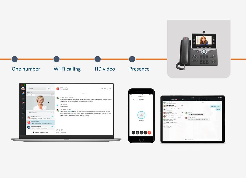 UC-One ondersteunt een softphone client in elke UC-One applicatie, waarmee telefoongesprekken kunnen worden aangenomen en geïnitieerd alsof deze vanaf een vast-telefoontoestel worden gevoerd. UC-One maakt hiervoor gebruik van de beschikbare data-verbinding en biedt een uitgebreide set aan telefoniefunctionaliteit.