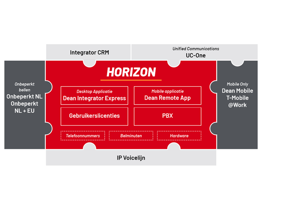 Schematische weergave van de Horizon dienst met UC-One add-on